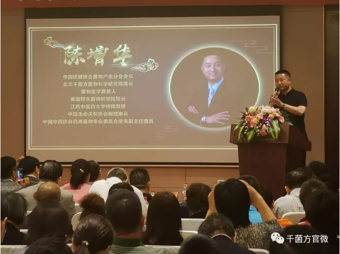 5月18日,2019菌物健康产业合作发展论坛在京召开,本次论坛以“菌临天下,共襄盛典”为主题,由中国保健协会菌物产业分会主办,中国中药协会执行副会长刘张林,中国生命关怀协会理事长、原中国武警总医院院长雷志勇将军,中国医学科学院药物研究所研究员陈若芸等各领域领导、专家近百人参加。中国保健协会菌物产业分会会长、千菌方创始人陈增华受邀出席,并发表主题演讲。